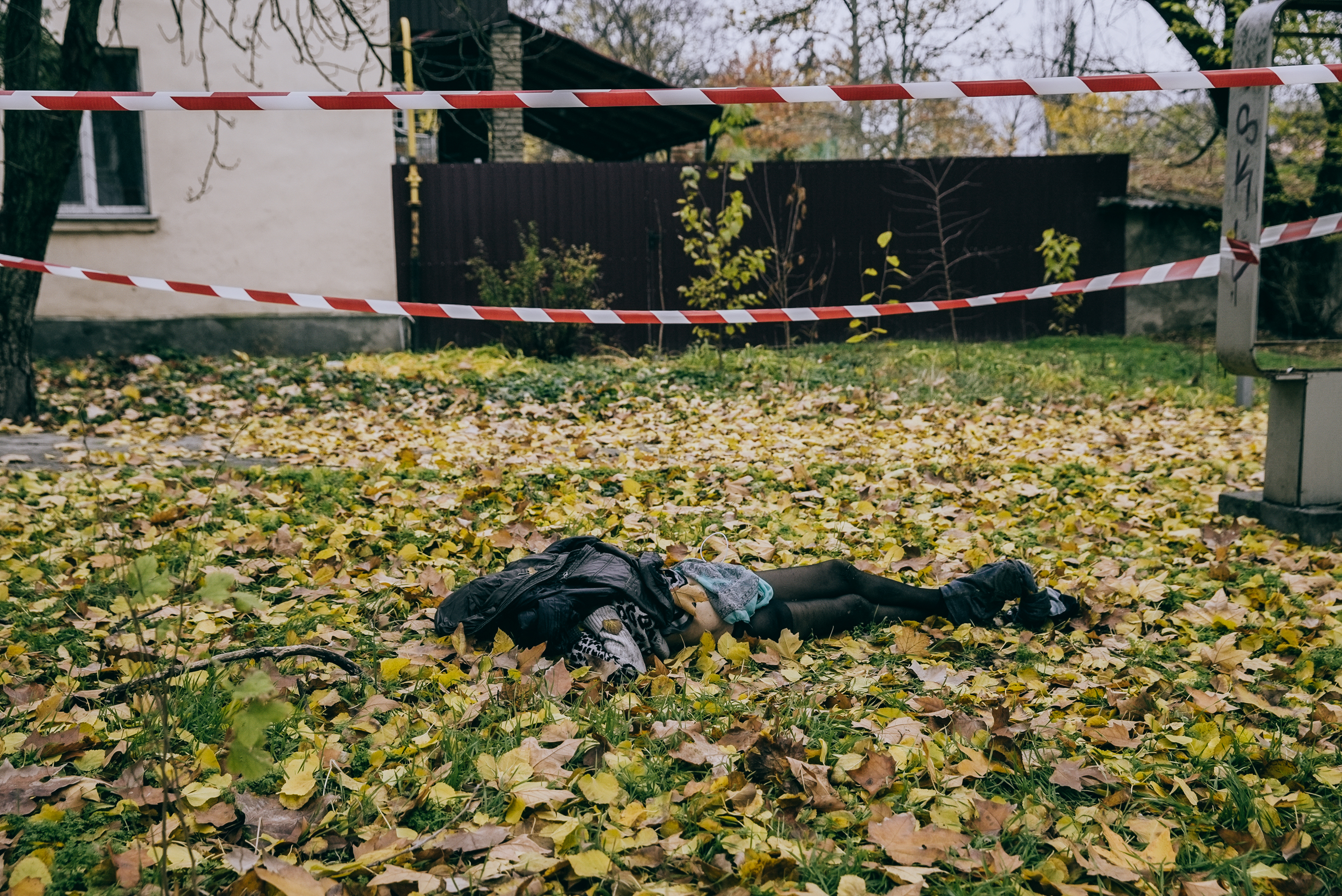 4. A killed woman in Kherson yard after the city was retaken by Ukrainian army on 18 November, 2022.