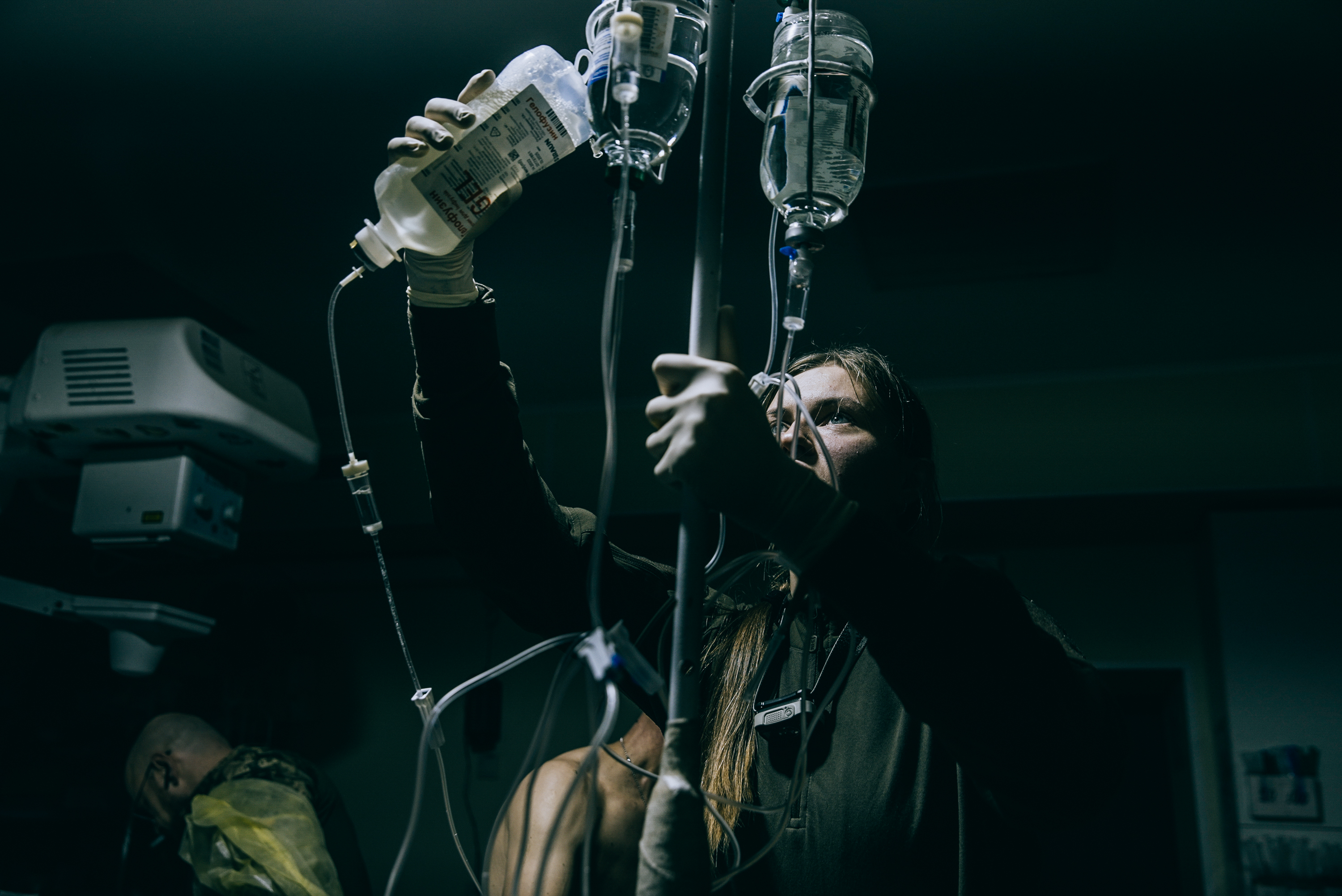 1. A volunteer medic is assisting at the stabilization point in Bakhmut on 30 October, 2022.